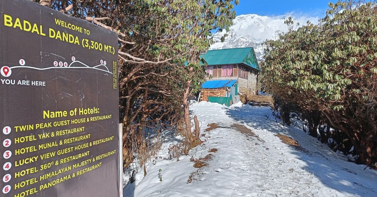 From Badal Danda, the trail climbs steadily toward High Camp, located at an altitude of 3,780 meters. The final section becomes steeper but more scenic, with fewer trees and more alpine terrain. After walking for about 6 to 7 hours, you will arrive at High Camp, where the mountains feel close and the air is crisp. This is where you’ll rest for the night, preparing for the next morning’s early hike to the viewpoint.